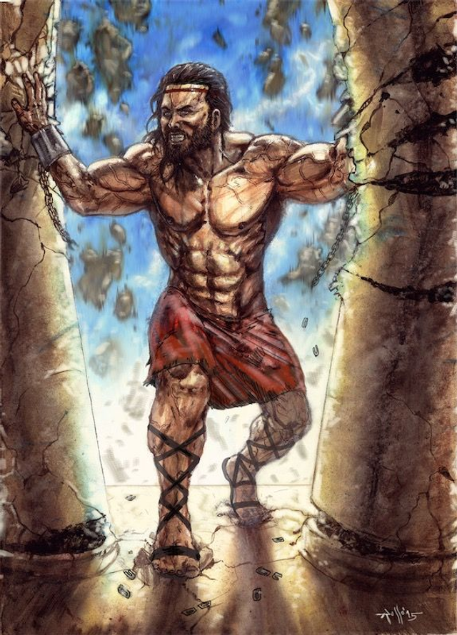 Sansone con le colonne - Il quadro è dipinto ad acrilico su tela 50x70 montata su telaio di legno.